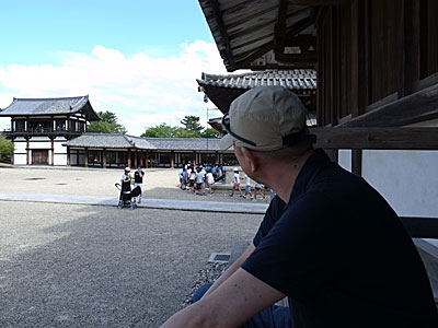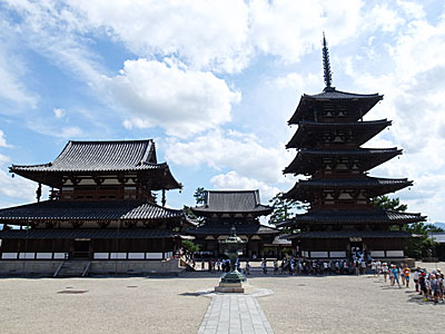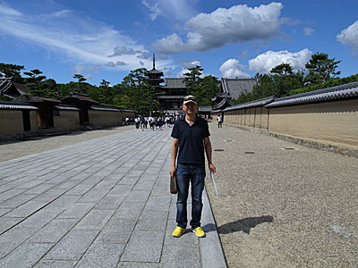 奈良です。法隆寺です。五重塔です。金堂です。夢殿です。飛鳥時代です。おやじ二人で修学旅行なのです!
