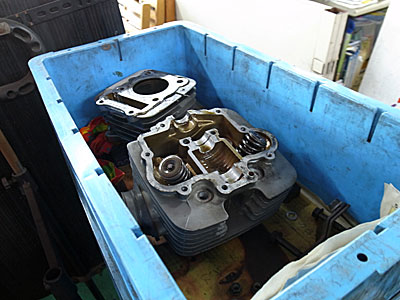 実は、このスズキ君、一度入院しました。あっ、事故を起こしたわけじゃなく、エンジンからの異音が気になったのです。エンジンの頭の部分から音がしているようでした。多少はエンジンの構造も理解している陶芸師なので、おおよその見当はつきました。カムシャフトかバルブかタイミングチェーンか?バイク屋の主人に聞いてみると、その全てだったようで、特にタイミングチェーンの張りを調節する部品が弱っていたようで、チェーンが緩んでいて廻りを少し削っていたような。とにかく、入院させてよかったようで、退院してきたスズキ君は音も静かになり、エンジンの調子も良くなりました。
